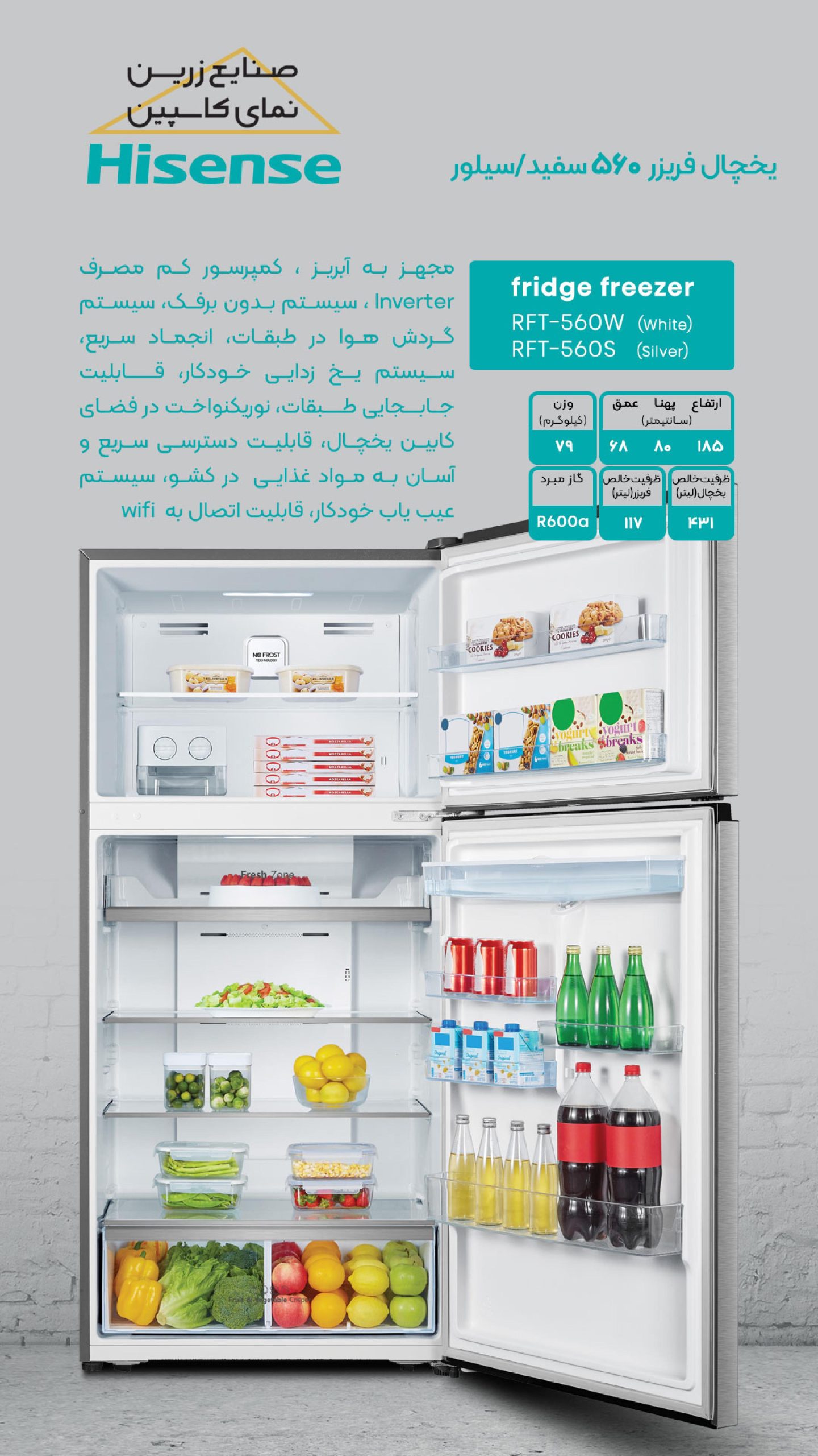 یخچال فریزر هایسنس RFT-560W سفید با ظرفیت بزرگ، طراحی زیبا و امکاناتی مثل بدون برفک، انجماد سریع، آبریز، عیبیابی هوشمند و کشوهای کاربردی انتخابی مطمئن برای خانوادههایی است که به دنبال دستگاهی با دوام، جادار و اقتصادی هستند.